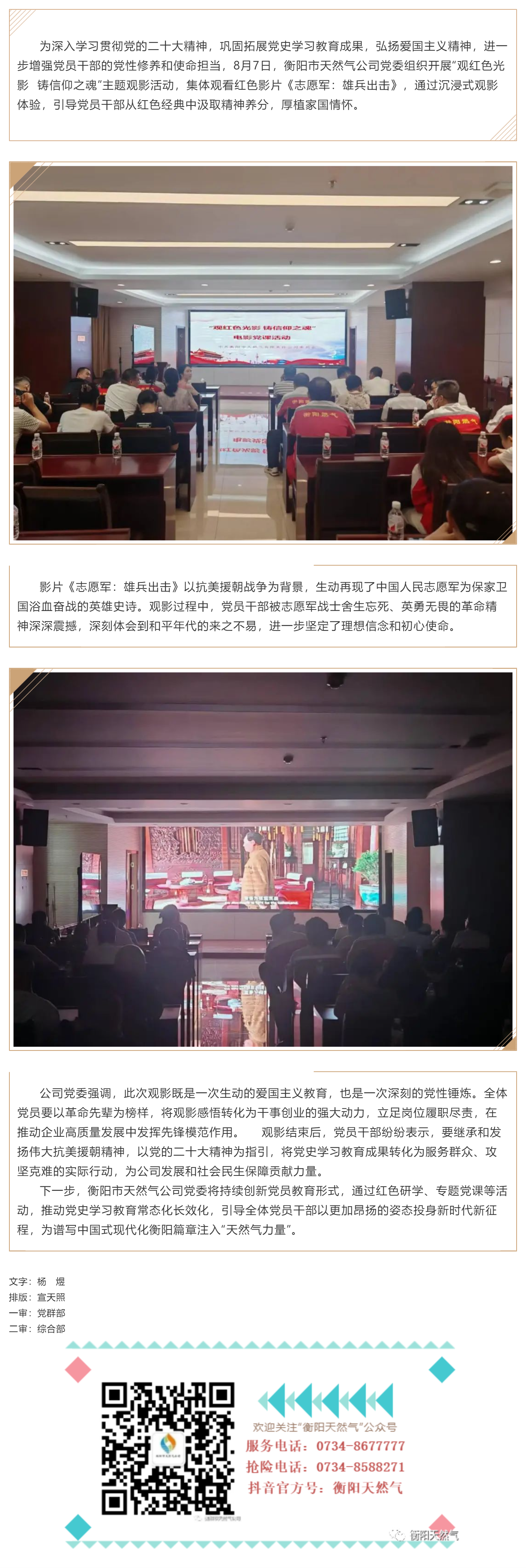 衡陽(yáng)市天然氣公司黨委組織觀(guān)看紅色電影《志愿軍:雄兵出擊》 以光影鑄魂激發(fā)奮進(jìn)力量